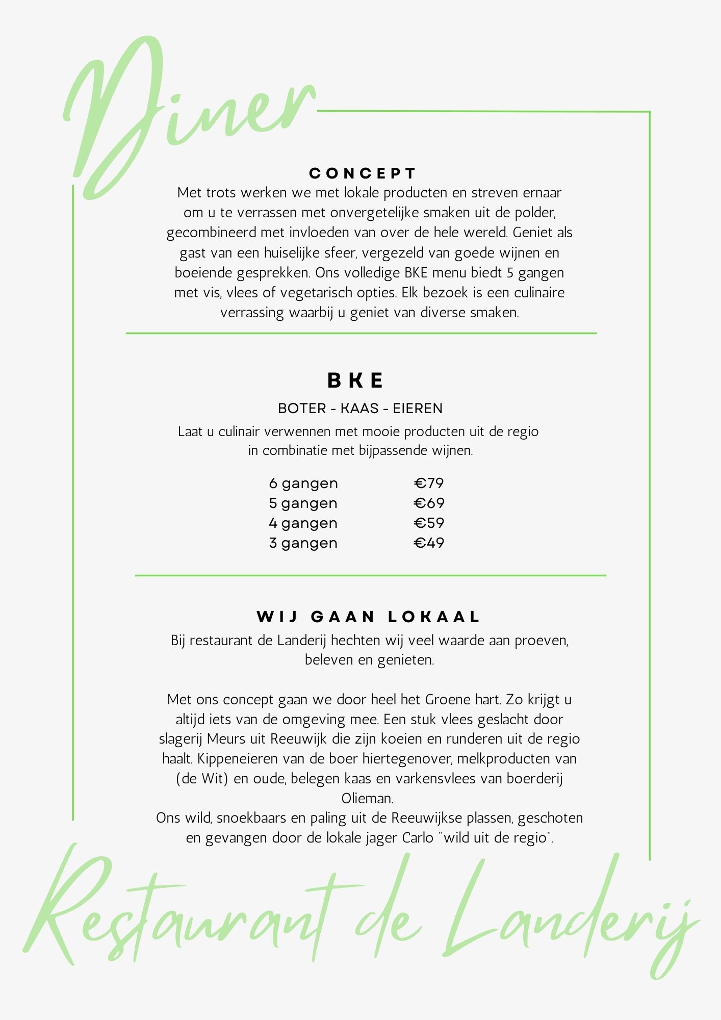 Ons Boter-Kaas-Eieren (BKE) menu is een trots onderdeel van ons aanbod. Met trots werken we met lokale producten en streven we ernaar om je te verrassen met onvergetelijke smaken uit de polder, gecombineerd met invloeden van over de hele wereld.
